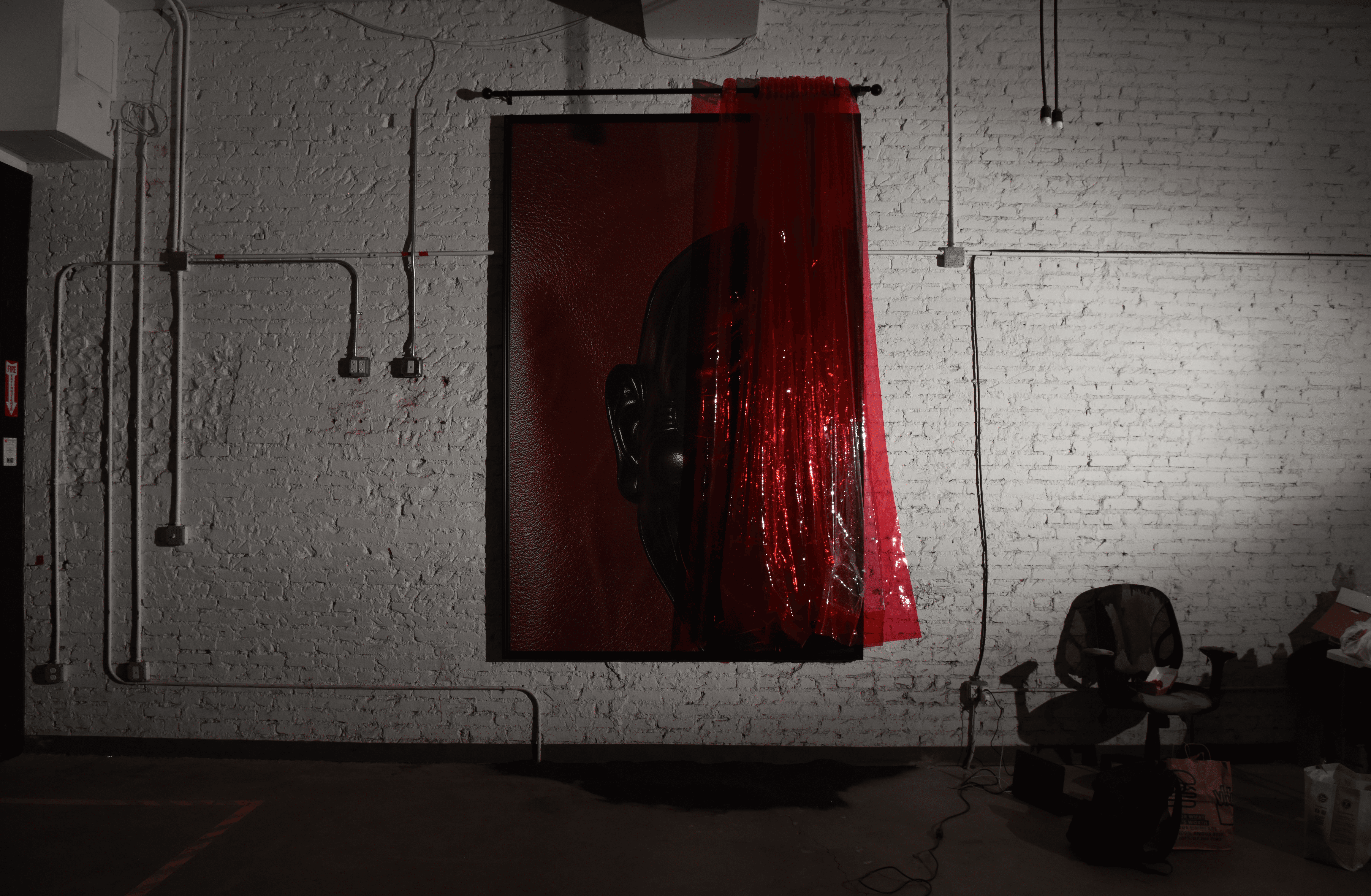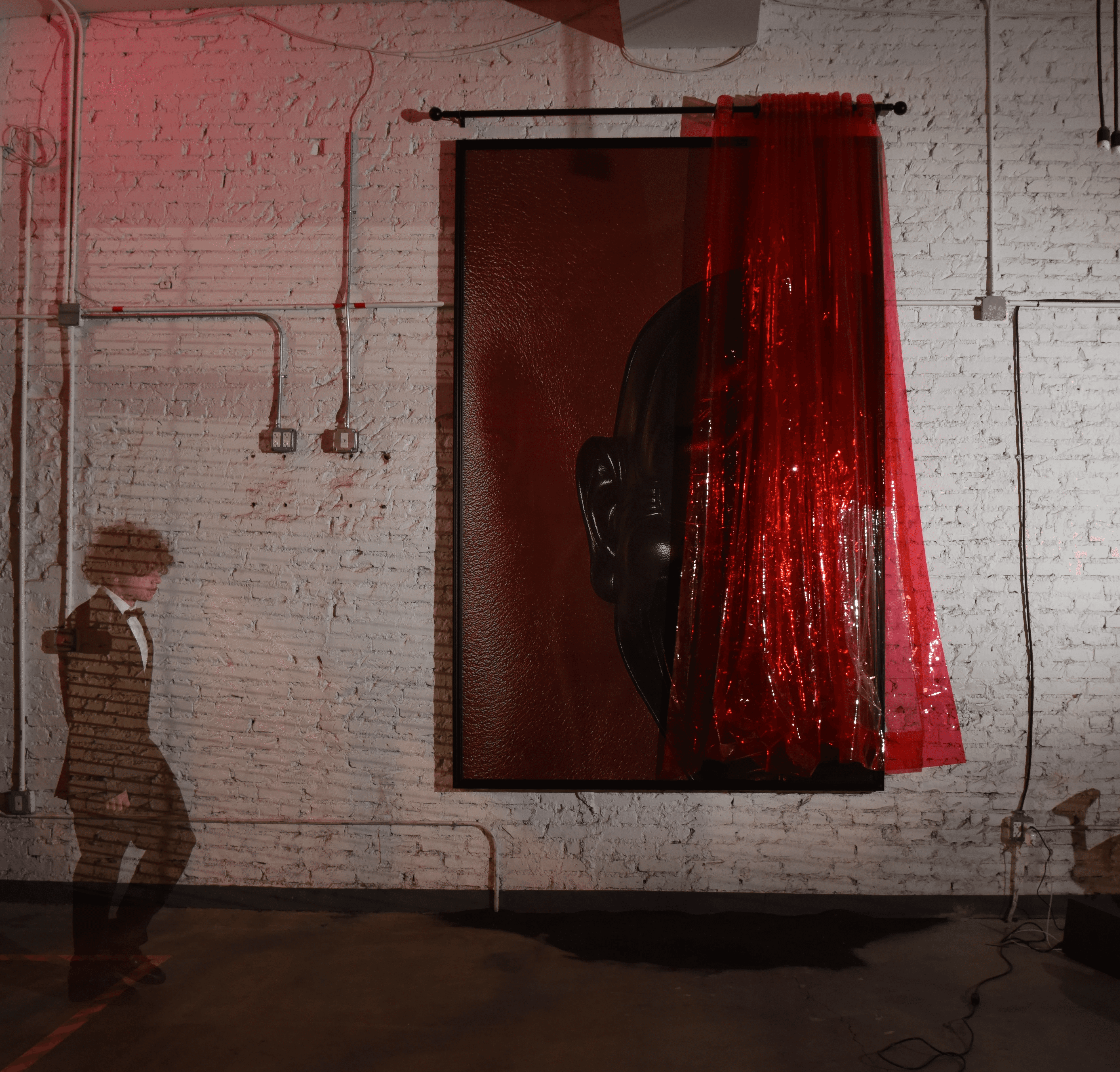 Transparent Thermoplastic Polyurethane Pleated Sheets, Semi-Gloss Acrylic Paint on Wood, Steel Roman Pole, 12-Color Inkjet Print on Canvas